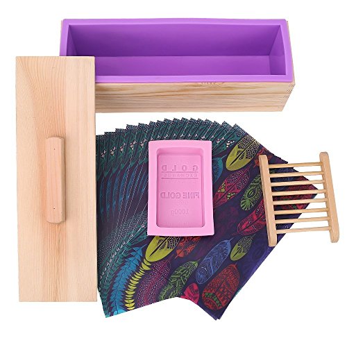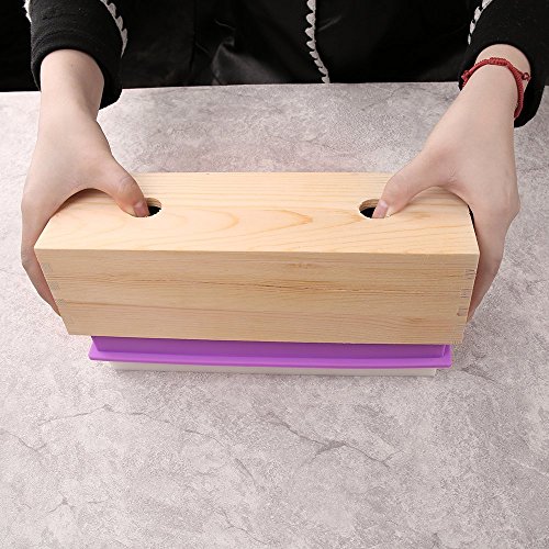 HUKOER rettangolare muffa del sapone del silicone con la scatola di legno e coperchio in legno con 2 fori di pressatura, 2 pezzi stampi silicone sveglio e un supporto di legno del sapone fatto in casa per fai da te (A)