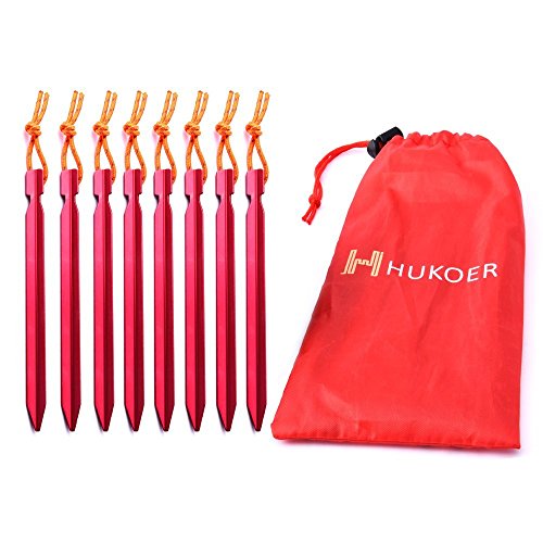HUKOER Stakes Tenda 8 Confezione Burly in lega di alluminio con il sacchetto delle spine, leggero Amaca Pioli Footprint da 7 pollici per il campeggio, spiaggia, neve e sabbia