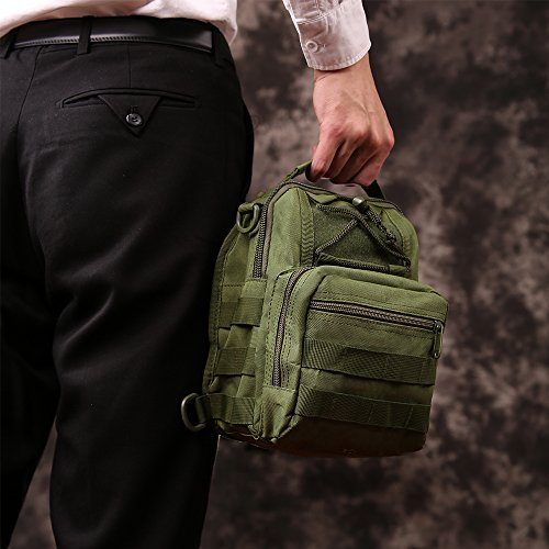 HUKOER Zaino Monospalla Uomo Militare Casuale Portabile Impermeabile all'aperto Borsa per Viaggio Trekking Campeggio Escursione (Verde Esercito)