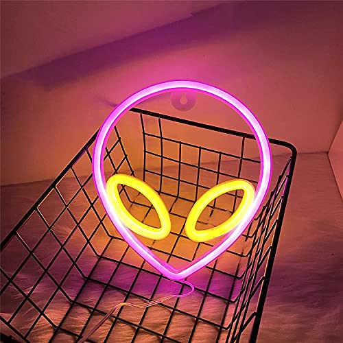 HULIN LED Neon Sign Night Light, Neon Alien Sign LED Lampade decorative USB o a batteria Per Home Pub, Party, Taverna, Bar counter (Rosa caldo)