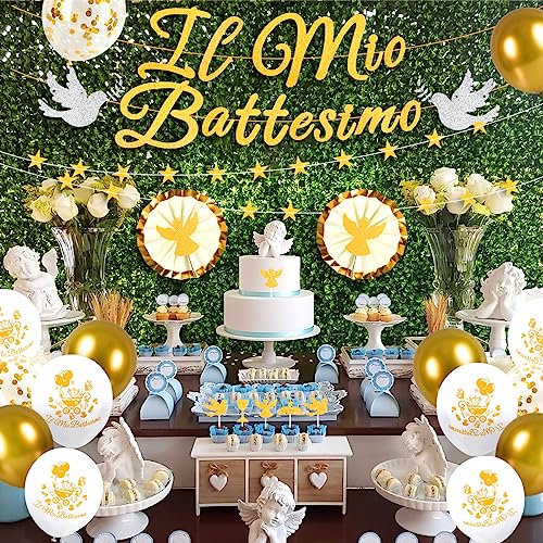 Humairc Addobbi per Battesimo Oro 25pz Prima Comunione Decorazioni Il Mio Battesimo Striscione Battesimo Palloncini Topper Torta Battesimo Coriandoli, per Comunione Battesimo per Ragazzo Ragazza
