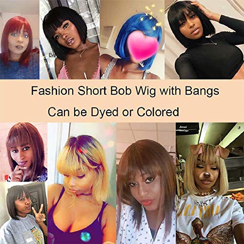 1. Short Bob wig with bangs Hair Material: 100% human hair, glue-free machine-made no lace front Short bob wigs human hair. No chemical synthetic hair. Healthy and natural.