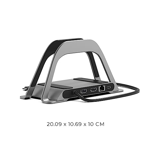 Trasforma la tua scrivania con un supporto verticale per laptop e un adattatore USB 10 in 2 per Macbook Pro e Macbook Air: a differenza di altri accessori per dongle e docking station per laptop, l'hub HumanCentric aiuta a mantenere la tua scrivania organizzata. Il dispositivo è completamente plug and play e non richiede driver Apple. Basta collegarsi e mettersi al lavoro. Include porta SD / Micro SD, 2 x USB 3.0, 1 x USB 2.0, 2 x HDMI 2.0, Gigabit ethernet, jack per cuffie da 3,5 mm, ingresso USB-C PD (max 100 W).