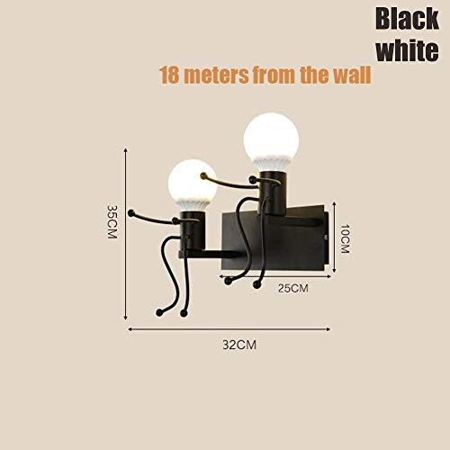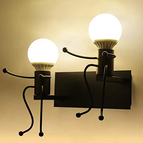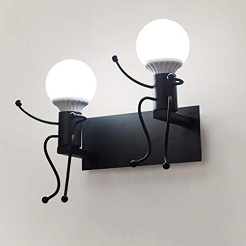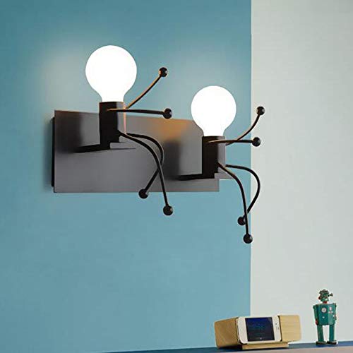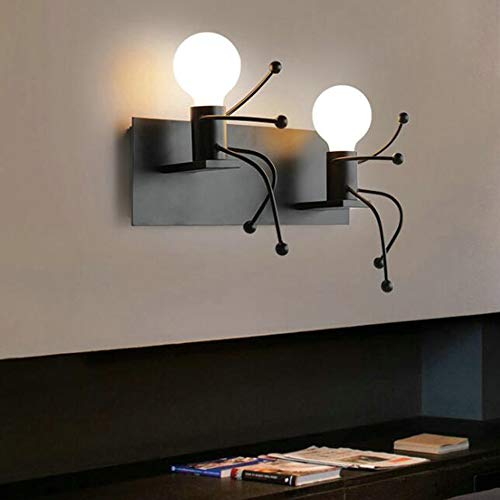 2 Humanoid Creativo Vintage Lampada da Parete Industriale Retro Applique da Parete Lampada a Muro Supporto in Ferro Art Deco E27 per Bar, Camera da Letto, Cucina, Ristorante, caffè, Corridoio (Nero)