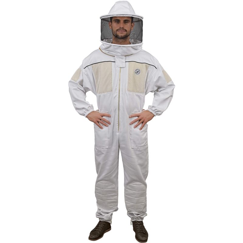 Tuta protettiva uso professionale per Apicoltura. Progettata per il comfort, realizzata per durare nel tempo. Le tute ventilate per apicoltura di Humble Bee sono realizzate con una pregiata composizione di 50% cotone e 50% fibra sintetica, con inserti interamente sintetici per la ventilazione. Abbiamo ulteriormente migliorato l'alta qualità del prodotto con robuste cerniere in ottone, tasche rinforzate a doppia cucitura e una elegante custodia in tela per il trasporto. Abbiamo aggiunto inoltre un comodo elastico in vita, polsini elastici per proteggere le braccia e asole fermapollici per tenere la tuta sempre a posto. Grande resistenza e massima protezione: in tutta sicurezza contro le punture di ape. Le tute ventilate da apicoltura di Humble Bee sono realizzate in un tessuto di medio peso (280 gsm) ottenuto con una particolare trama intercalata, che offre una maggiore protezione contro le punture di ape. Al tempo stesso, gli inserti per la ventilazione, ad altissima traspirabilità