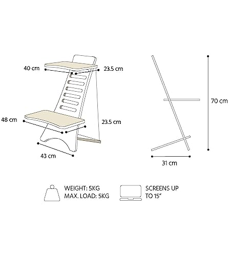 SIT STAND desk converts any desk into a standing desk. It holds laptops with screens up to 15”, and a total weight of up to 5kg. A perfect laptop riser for you