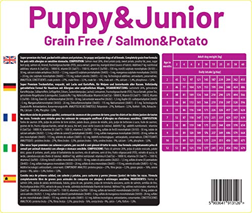 The Hunger of the Wolf Cibo secco per cuccioli e cani giovani e cani con allergie, linea delicata senza cereali a base di salmone e patate - 14kg