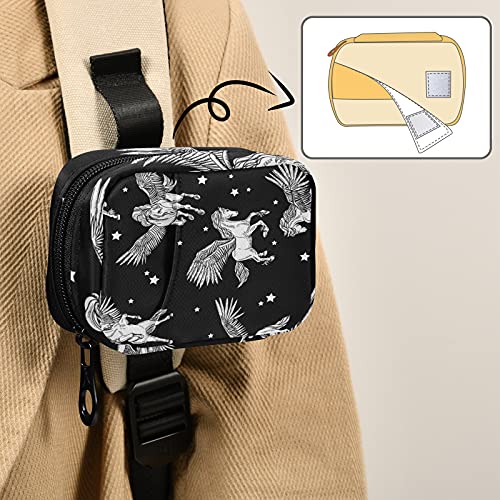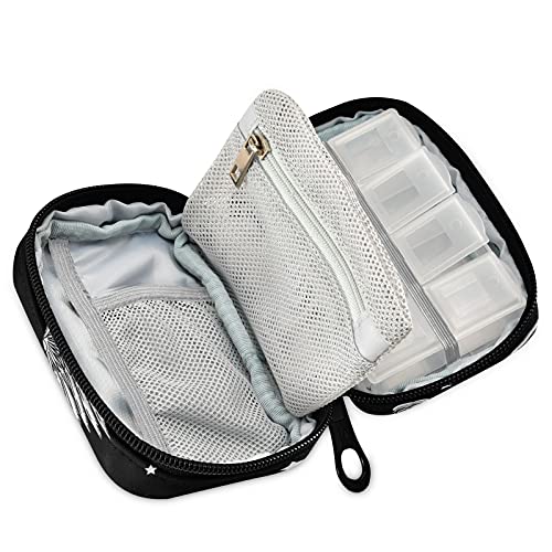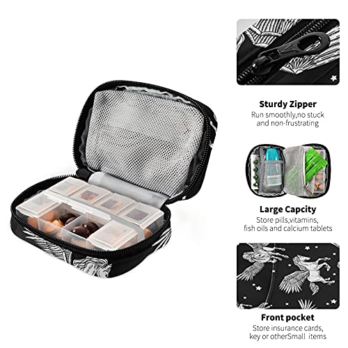 Hunihuni - Custodia per pillole con animali bianchi Pegasus per medicina settimanale, borsa portatile per riporre pillole e pillole, con chiusura lampo