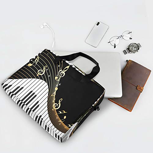 Hunihuni - Custodia a tasca per computer portatile, tastiera pianoforte, note musicali, portatile, con tracolla, per donna, uomo, lavoro, ufficio, scuola, 15-16 pollici