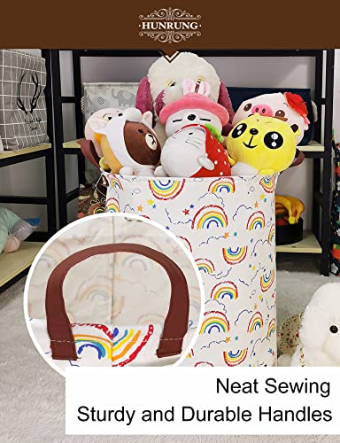 HUNRUNG Laudry Hamper, Large Canvas Fabric Lightweight Storage Basket Toy Organizer Sporty Clothes Collapsible Waterrepeat for College Dorms,Bedroom, (circolare arcobaleno)