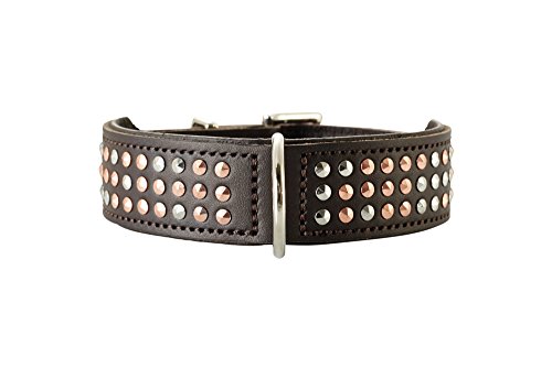 HUNTER SAN DIEGO - Collare per cani, in pelle, morbido, borchie, 45 (S-M), colore: Marrone scuro
