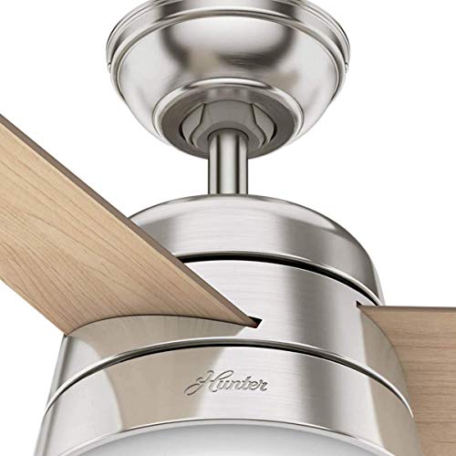 HUNTER FAN Finley, Ventilatore da Soffitto per Interni con Luce e Telecomando, Finitura in Nichel Spazzolato, 3 Pale in Noce Americano e Legno Naturale, Ideale per l'Estate e l'Inverno, Modello 50643