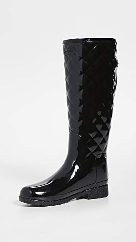 Hunter Original Donna Refined Tall Quilted Gloss Nero Wellington Stivali-UK 4