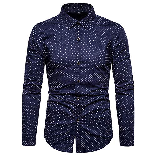 Huntrly Camicia a Maniche Lunghe da Uomo Camicia a Maniche Lunghe con Risvolto a Maniche Lunghe con Stampa a Pois Autunno L
