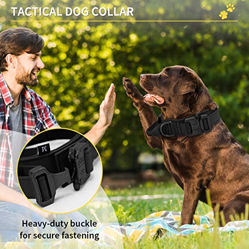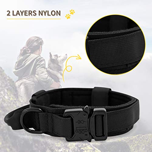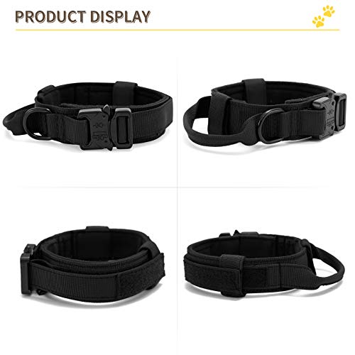 HUNTVP Collare Tattico per Cani Regolabile con Maniglia di Comando, Collare Militare in Nylon con Fibbia in Metallo per Cani di Taglia Media e Grande, Addestramento, alla Caccia, All'aperto, Nero-XL
