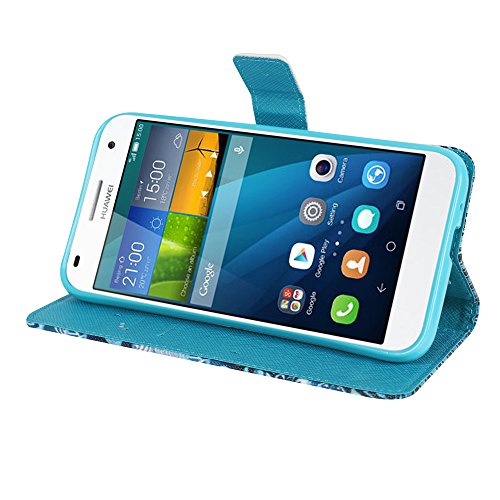 Hunye Custodia PU Pelle Portafoglio per Huawei Ascend G7 Case Indiano Flip Cover con Stilo Penna blu