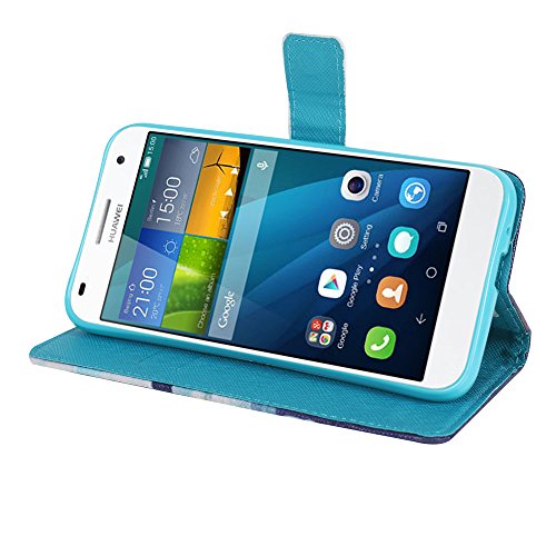 Hunye Custodia PU Pelle Portafoglio per Huawei Ascend G7 Case Pulmino con Animali Flip Cover con Stilo Penna azzurro