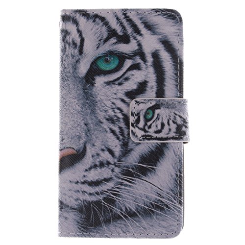 Hunye Custodia PU Pelle Portafoglio per Samsung Galaxy Ace 4 SM-G357FZ Case Tigre bianco/nero Flip Cover con Stilo Penna argento