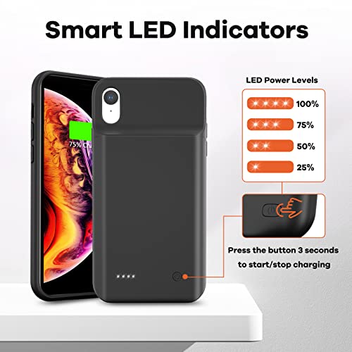 HUOBAO Custodia/Cover per batteria per iPhone XR, [6000mAh] Custodia di ricarica per iPhone, custodia protettiva portatile, batteria ricaricabile estesa per iPhone XR (6.1 pollici)
