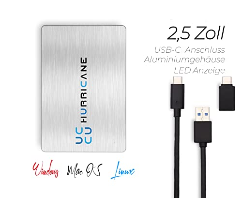 Hurricane MD25C3 Hard disk esterno portatile 500GB, 2,5" USB-C disco rigido esterno per foto, smart TV, PC, laptop, computer, ps4, ps5, Xbox compatibile con Windows Mac OS Linux - argento