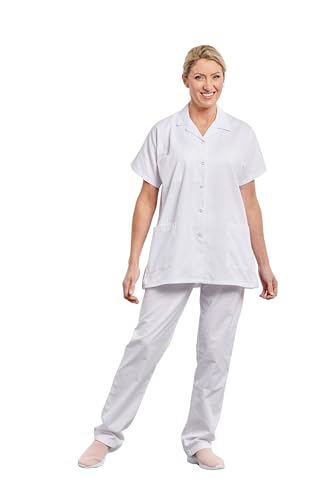 Hurry Jump Label - Camicetta da donna a maniche corte, colletto a 3 tasche in twill 210 g, colori bianco, pressione antiruggine, lavaggio in lavatrice a 90 gradi o industriale T5-52/54
