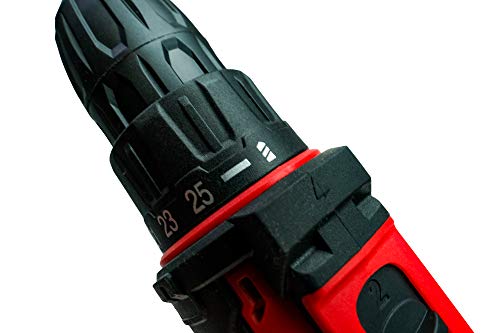 2 funzioni di trapano e funzione cacciavite. 25 zone di frizione garantiscono una coppia precisa del trapano. Il limite della coppia impedisce la foratura del materiale o una rottura o danni alle teste delle viti