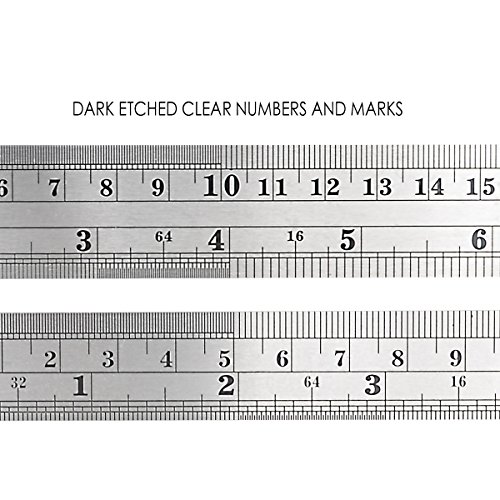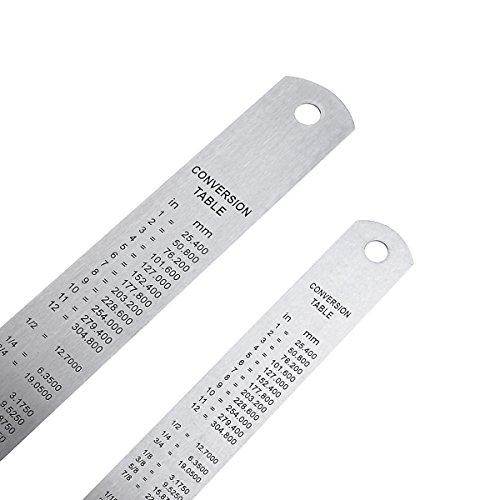 Husdow, set di righelli in acciaio INOX, righello in metallo, include 30,5 cm e 15,2 cm con tabella di conversione e sacchetta per riporli