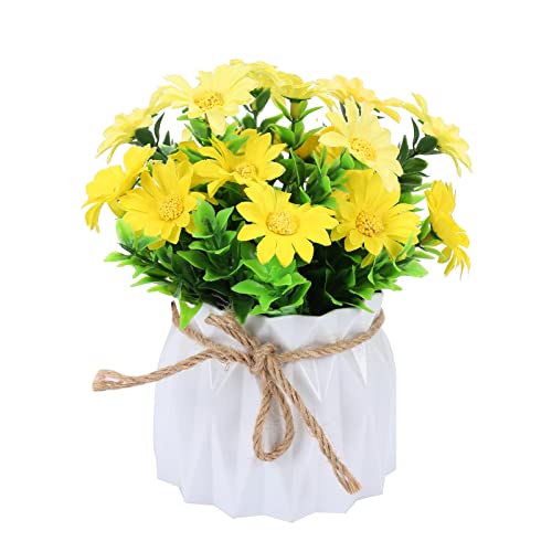 HUSESIN Fiori Artificiali in Vaso Mini Piante in Vaso da Interno Esterno Fiori Finti Crisantemo per Cimitero Fiori di Plastica Fiori Finti con Vaso per Decorazioni Casa Soggiorno Tavolo Matrimonio