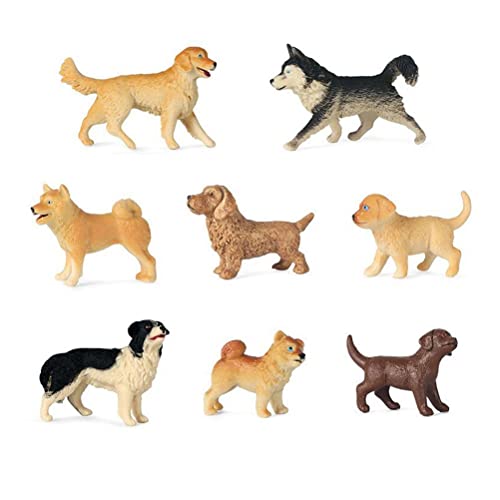 HUSHUI Set da Gioco con Figurine per Cani, 8 Pezzi Set da Gioco con Figurine per Cani Mini Figure di Cuccioli di Plastica Realistici Dettagliati Cake Toppers Regalo di Compleanno per Bambini