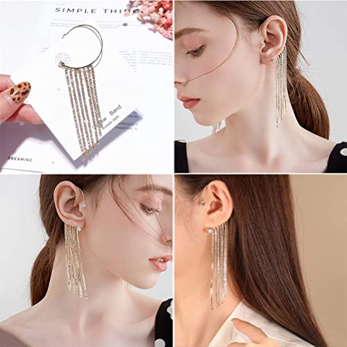 HUSHUI Orecchini con Nappe con Diamanti Scintillanti, Orecchini con Polsini Pendenti Senza Piercing per Donne e Ragazze Polsini con Orecchie da Fata per la Festa Nuziale