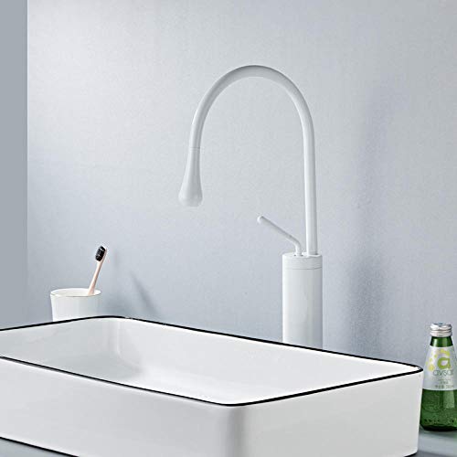 HUSHUN Moderna Cascata Popolare Bagno Lavandino Rubinetto Monocomando Lavabo Monoforo Rubinetto Miscelatore Solido Mono Lavabo Vasca da Bagno Rubinetti Lavello@Bianco alto- 48 cm di altezza