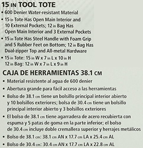 La borsa di 30,5 cm ha 3 tasche esterne e la borsa ha 14 tasche esterne. Tra questi due borse, è possibile ottimizzare la vostra organizzazione, dividendo i vostri strumenti tra quelli necessari per riparazioni domestiche o restauri e quelli per handiwork, carpenteria, o lavori di costruzione in viaggio.