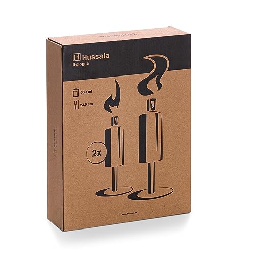 Hussala Bologna Fiaccole per Esterno, fiaccole giardinio, fiaccole a Olio, Acciaio Inox (Lunghezza: 24 cm), Argento