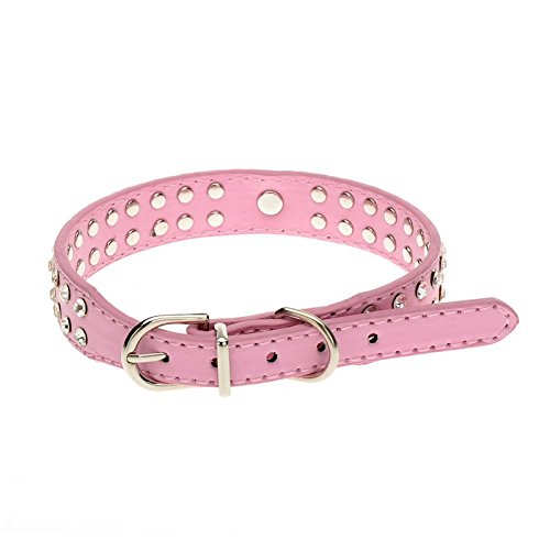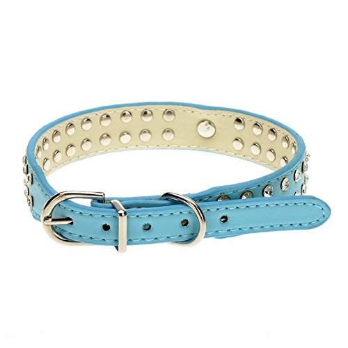 HUSTON LOWELL Aution House 2/3 PCS 2 Righe Strass Bling Cuore con Borchie Cane Collare di Cuoio per Il Collare di Piccola o Media Cane (Blu/Rosa/Rosso S 2.0 * 37(CM))