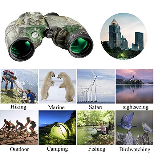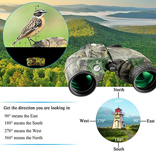 HUTACT Compatto 10x50 Binocolo con Bussola che Misura la Direzione, Regolo Incorporato Per la Caccia, la Marina, la Pesca, l'Osservazione degli Uccelli, Binocoli Professionale Potente