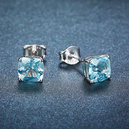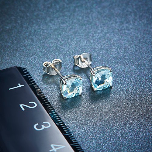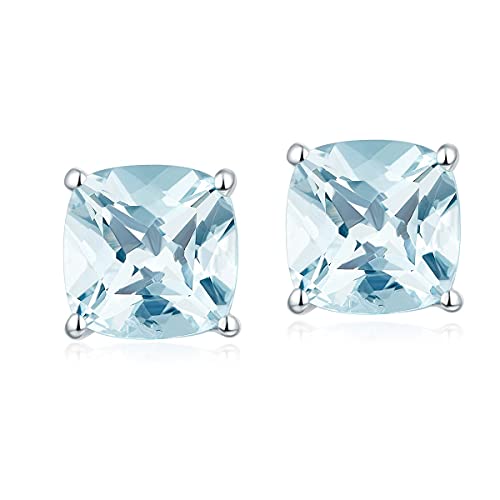 Hutang Jewelry, orecchini a perno in resistente argento sterling 925 con acquamarina naturale da 1,049 carati, cuscino da 5 mm, gioielleria con pietre preziose