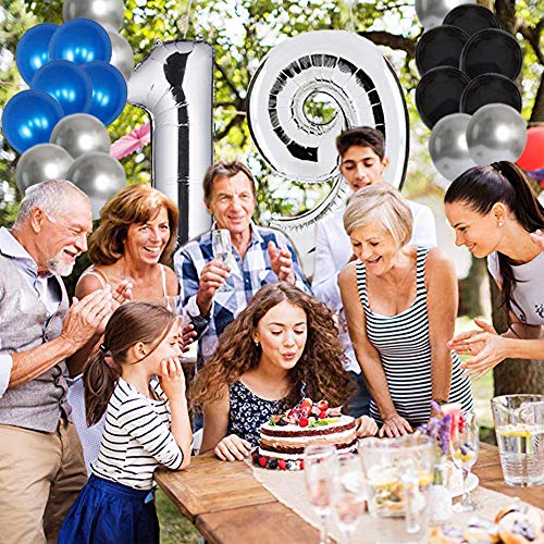 Huture 16 Forniture per Feste di Compleanno Palloncino Foil Numero 16 in Argento Kit Palloncino Banner di Buon Compleanno Palloncino in Lattice Argento Nero Blu Palloncino a Forma di Cuore a Stella