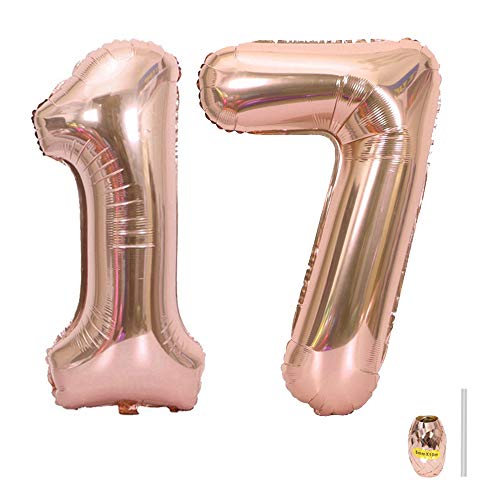 Huture 40" Lettera Alfabeto Gran numero 17 Palloncini Jiumbo Helium per 17/7/1 Dolce Compleanno Mylar Addio al nubilato Anniversario Festa di nozze Decorazione per decorazioni, Oro Rosa