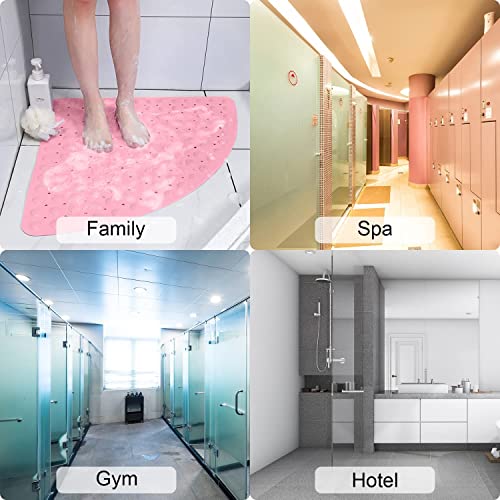 HUTVD Tappetino Doccia Antiscivolo, 54 x 54 cm Tappetino Doccia Angolare Tappetino da Bagno Tappetino Massaggiante Triangolare in PVC con Foro di Scarico per Doccia o Vasca da Bagno, Rosa