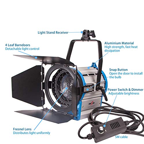 Hwamart Kit 1x1000W Fresnel tungsteno luci Fluorescenti 2X 4 Ruote bancari Luce Fly Case