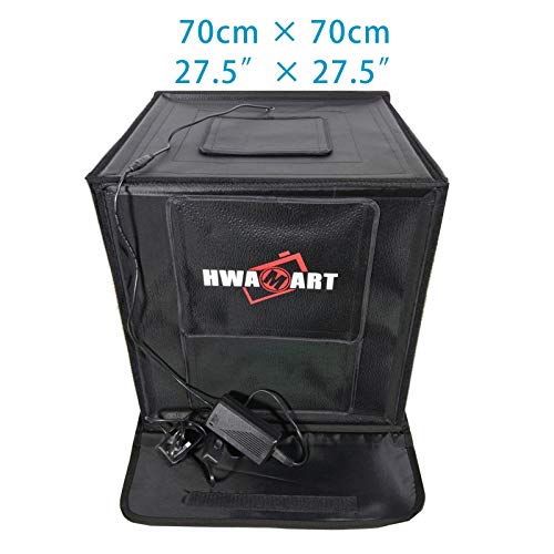 Hwamart 70x70cm LED 28" Pieghevole Studio ID 65W Softbox Foto Illuminazione Kit + Quattro sfondi Tenda Photo Studio Light Cube LED 28"