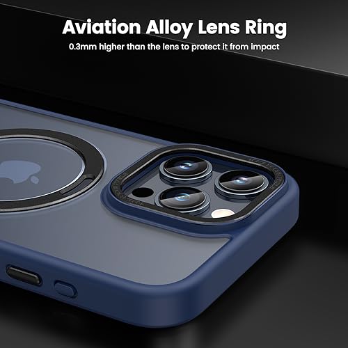 HWeggo Cover Magnetica per iPhone 15 Pro Compatibile con MagSafe,Custodia Traslucido con invisibile Stand,Protezione Antiurto di livello Militare, Retro Resistente ai Graffi,Blu