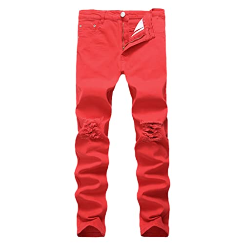 HWYBHT Jeans skinny strappati elasticizzati distrutti slim fit denim pantaloni a matita pantaloni rossi 40, Rosso