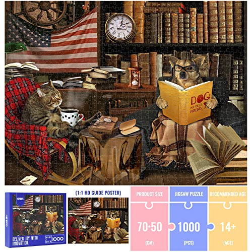 HXMARS Cani Jigsaw Puzzle 1000-Pezzi: Animali Cane Gatto Libro di Studio Puzzle Classici Gioco per Famiglia Adulti Adolescenti - Decorazione per la casa,27" X 20" IN