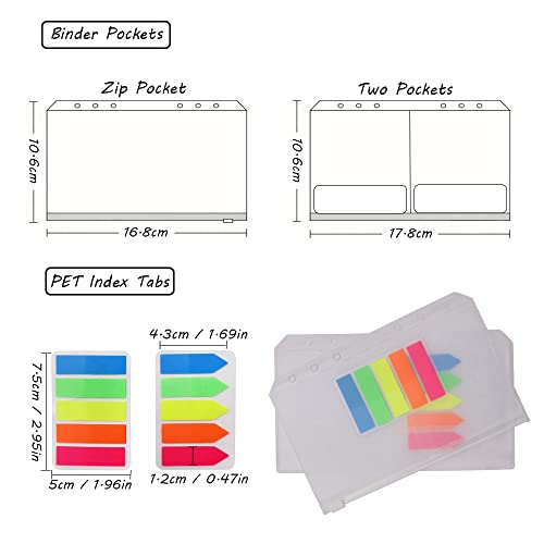 【Accessori Pratici】 - Le tasche raccoglitori possono tenere le vostre cose come carte, biglietti, ricevute ect in cassaforte. Gli adesivi colorati e le schede indice PET possono evidenziare informazioni importanti. I divisori di soggetto e il righello dei segnalibri sono buoni per la ricerca veloce. La carta di ricarica a 6 fori 2 pack consente di aggiungere o rimuovere facilmente le pagine al raccoglitore, adatta per notebook A6 ricaricabile e diario raccoglitore.