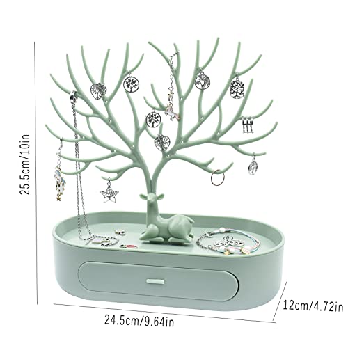 Hyacinthy Supporto per Gioielli, Supporto per Orecchini, Collane di Gioielli con Cassetti, Organizzatore, Albero, Scatola di Gioielli, Orecchini Pendenti, Braccialetti per Orologi (Verde)