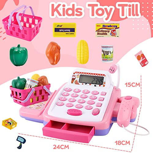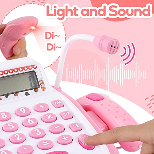 HYAKIDS Cassa Supermercato Giocattolo, Giochi Bambini 3 4 5 6 Anni, Registratore di Cassa with Scanner, Microfono, Luci e Suoni, Giochi di Ruolo Regalo per Bambina Bambini