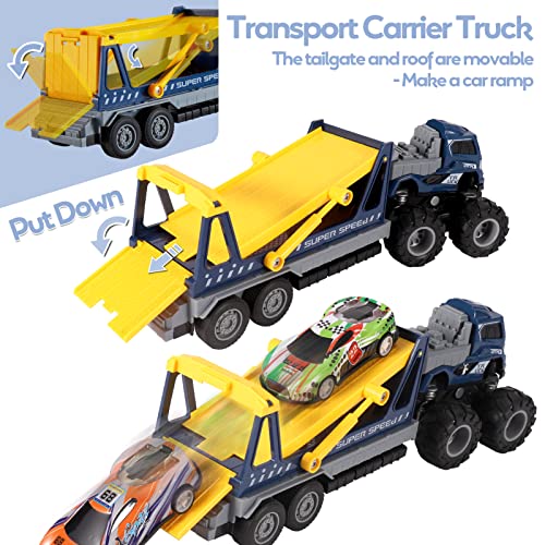HYAKIDS 17 in 1 Dinosauri Camion Trasportatore Giocattolo con 6 Mini Dinosauri Figures 8 Tira Indietro Macchinine Dinosauri Giocattolo Educativi per Bambini 3 4 5 Anni