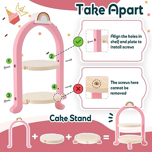 【Materiale di Legno Durevole】- Il set da tè è realizzato in materiale di legno di alta qualità, bordi lisci, robusti e durevoli. Dimensioni adatte per le vostre bambine ragazzi per afferrare. Dimensioni del supporto per torta: 24,5*17cm.