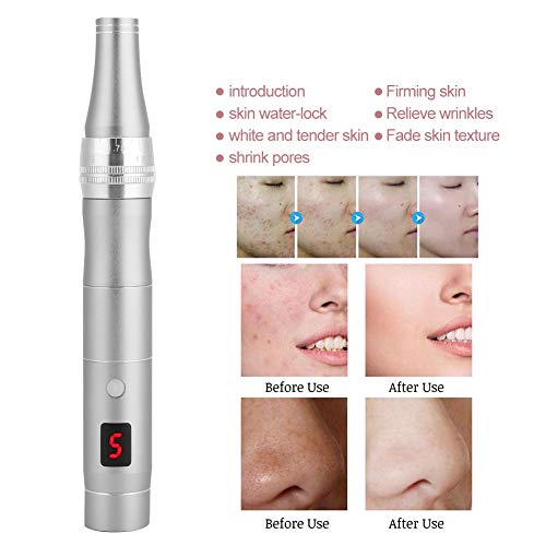 ¡¾Elevato assorbimento¡¿ Utilizzare micro penne ad aghi che l'assorbimento della pelle pu¨° raggiungere pi¨´ volte e migliorare la cicatrice dell'acne.Aiuta a rassodare la pelle, ringiovanisce la pelle, riduce le rughe cicatrici dell'acne.